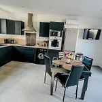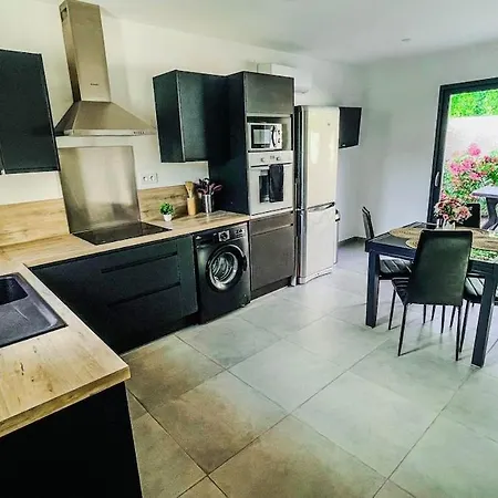 Instant Janin - Logement T3 Climatise Plain Pied Avec Jardin的住客可以在大厨房里享用新鲜烹调的饭菜. 最近公共汽车站很近,仅有200米. 客人可以在别墅的露台享受美好的时光.